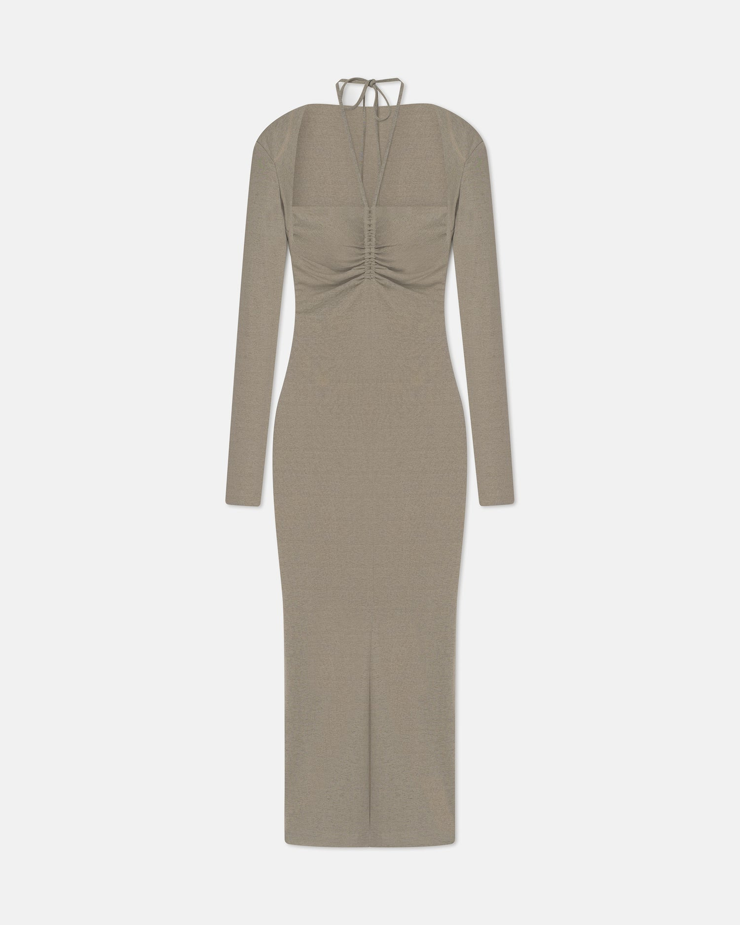 Nanushka’s Aponi Dress merges structure and fluidity. Crafted from soft mesh jersey, its wide shoulders and ruched bodice create a sculptural elegance. Part of the Fall-Winter 25 collection, Aponi expresses strength and sensuality in equal measure, an emblem of modern femininity grounded in effortless elegance. Fit Standard fit, matches usual sizing Model is 180 cm (5'11'') and wears a size S. Materials and Care Shell: 100% POLYESTER Machine wash warm (30°), Do not bleach, Do not tumble dry, Iron low heat (110°), Gentle Dry clean any solvent except Trichloroethylene