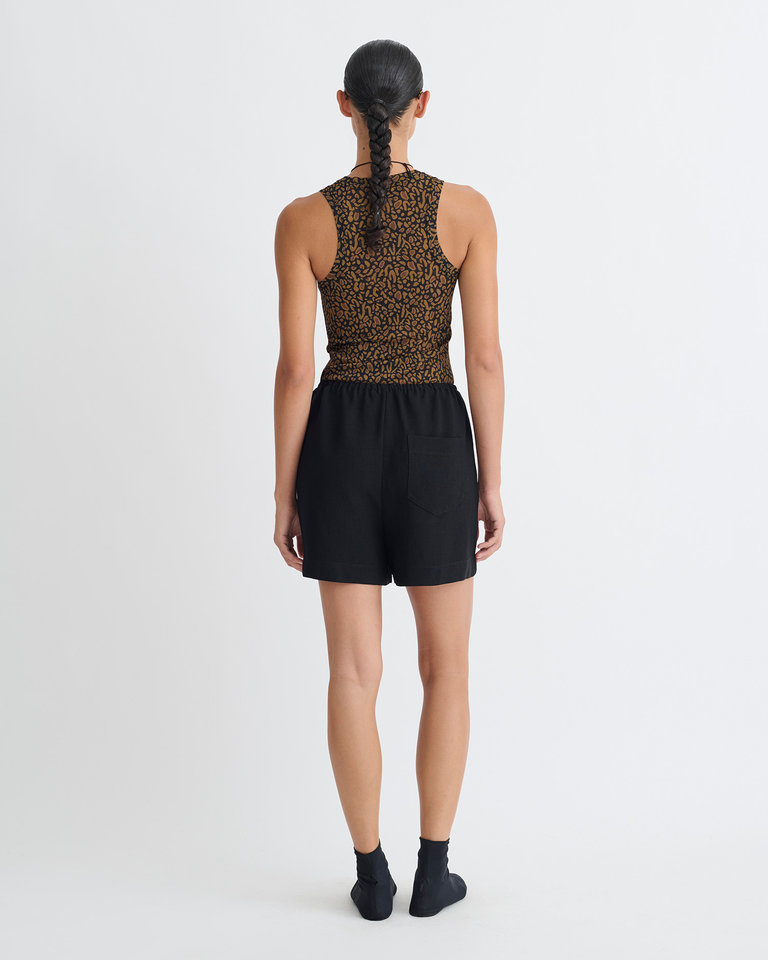 Part of our RECRAFTED capsule, the Anneke tank top is made from surplus mesh jersey. It's crafted to a body-skimming silhouette and decorated with an ocelot print. Materials and Care Shell: 100% Recycled Polyester Machine wash warm (30°) permanent press, do not bleach, do not tumble dry, iron low heat (110°), dry clean any solvent except trichloroethylene, do not wring Handle with care and wash less to ensure garment lifespan. Repair or resell to support circular fashion.