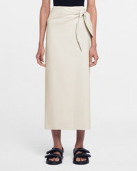 The Amas skirt is crafted from creme OKOBOR™ for a flattering wrap silhouette. It's finished with a concealed side button, elasticated waist and tie front for comfort and functionality. Fit Designed to fit sleekly against the body. Take your usual size for a bodycon fit, or size up for a more relaxed effect. Materials and Care Body: 56% Recycled Polyester; Body 44% Polyurethane; Lining 100% Polyester; Padding 100% Polyester Do not bleach, do not tumble dry, dry clean any solvent except trichloroethylene, do not wash, do not iron, thisproductismadefromadelicatefabricandhasaspecialfinishpleasestoreseparatelyandhandlewithcare, darkcoloursmaytransferontothelightsurfaceofthisproductandcausedamage