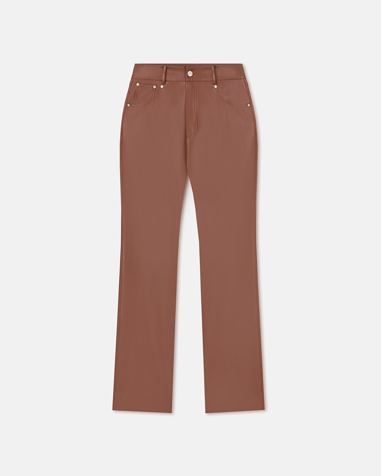 The Jacoba pants are crafted from our exclusive OKOBOR™ alt-leather fabric and come in a new henna tone – consider it a statement-making neutral. They sit high on the waist before falling in slim legs, and are finished with a classic five-pocket design. Fit Standard fit, matches usual sizing. Materials and Care Shell: Base: 100% Polyester (Recycled), Coating: 100% Polyurethane Do not wash, do not bleach, do not tumble dry, do not iron, dry clean any solvent except trichloroethylene. Handle with care to ensure garment lifespan. Repair or resell to support circular fashion. This product is made from a delicate fabric and has a special finish, the dark color of this product may transfer onto light surfaces and cause damage. Please store separately and handle with care.