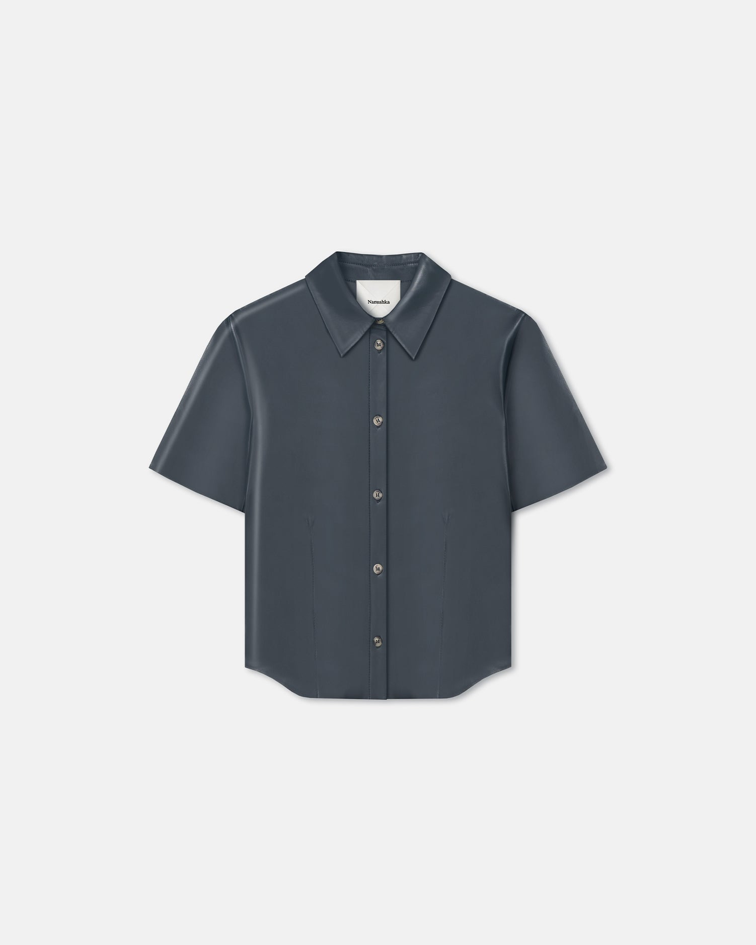 The Clare shirt exemplifies understated elegance. It’s made from our signature Okobor™ in steel blue for a slim-fitting, short-sleeved silhouette. Fit Standard fit, matches usual sizing. Materials and Care Shell: Shell1: 100% Polyester (Recycled), Shell2: 100% Polyurethane Do not wash, do not bleach, do not tumble dry, do not iron, gentle dry clean any solvent except trichloroethylene Handle with care to ensure garment lifespan. Repair or resell to support circular fashion. This product is made from a delicate fabric and has a special finish, The dark colour of this product may transfer onto light surfaces and cause damage. Please store separately and handle with care.