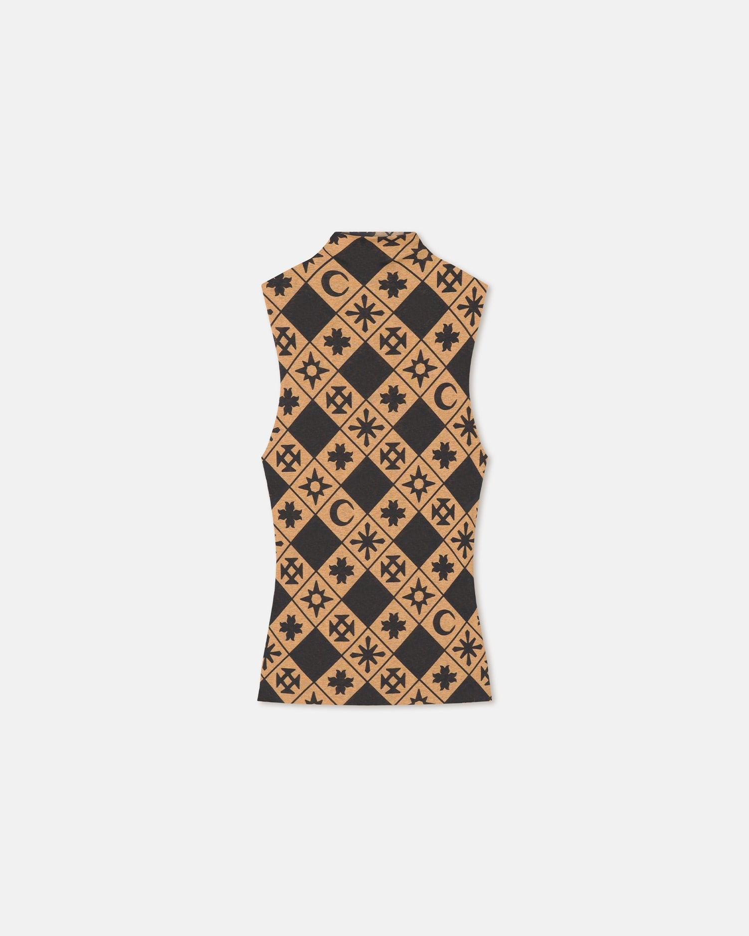 The Annyka top has an understated silhouette – think mock neck and figure-hugging fit – that’s enhanced by oak and black Symbol Tile print. It’s made from our signature mesh jersey. Fit Tailored to be fitting against the body. Materials and Care Shell: 100% Polyester Machine wash warm (30°), do not bleach, do not tumble dry, iron low heat (110°), gentle dry clean any solvent except trichloroethylene Handle with care and wash less to ensure garment lifespan. Repair or resell to support circular fashion.