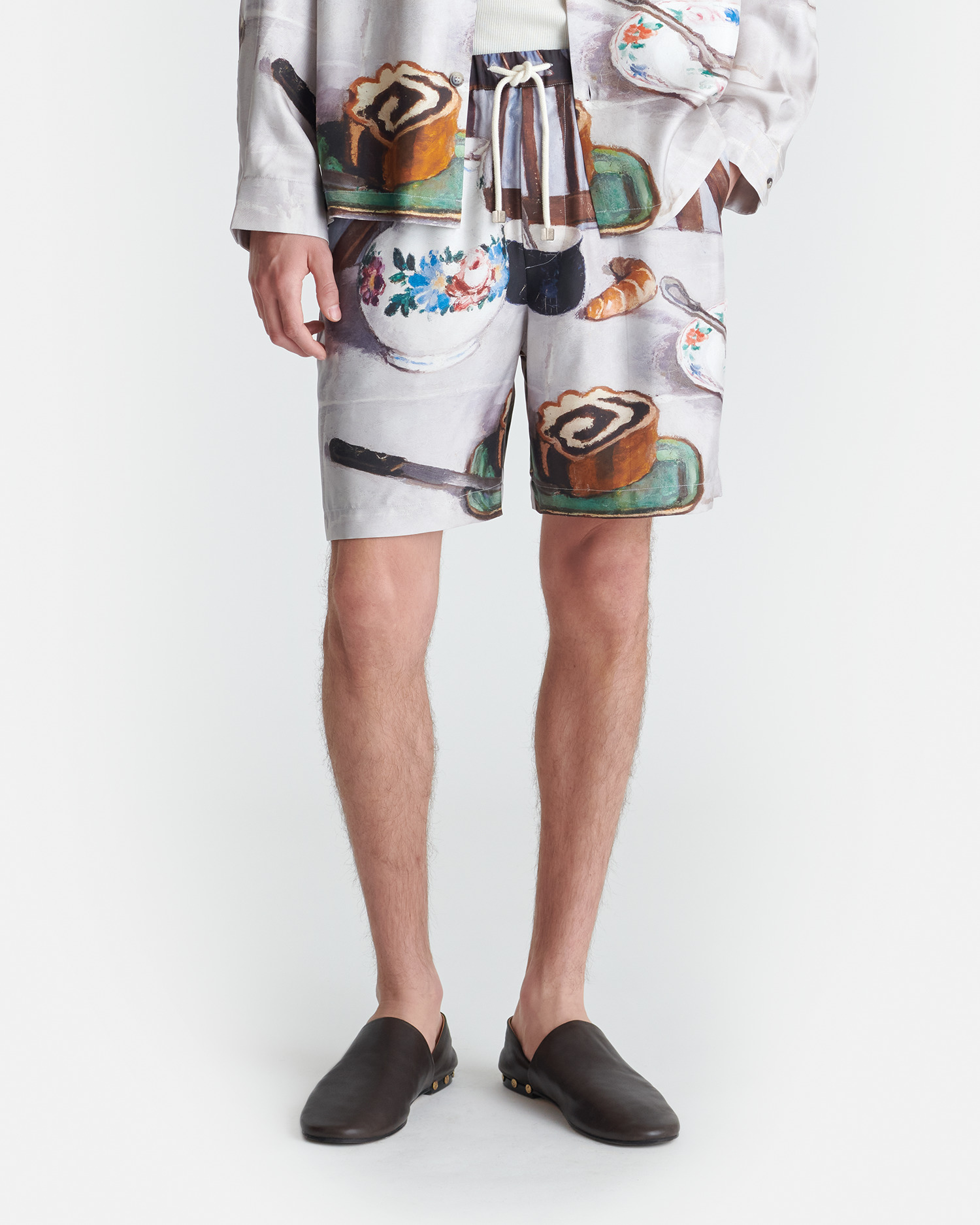 The Doxxi shorts are a long-standing Nanushka style prized for their modern sense of ease and versatility. Crafted from soft twill silk, they’re printed with the Poppyseed Cake painting by Hungarian artist Adolf Fenyes. An elasticated drawstring waist and knee-length silhouette keep things practical. This piece is part of the exclusive Adolf Fenyes capsule - a celebration of the artist's legacy, showcased through a curated selection of his still-life paintings. Adolf Fenyes, Poppy Seed Cake, 1910, Hungarian National Gallery Fit Standard fit, matches usual sizing. Model is 190 cm (6'3") and wears a size M. Materials and Care Shell: 100% Silk Do not wash, do not bleach, do not tumble dry, do not iron, dry clean any solvent except trichloroethylene. Handle with care to ensure garment lifespan. Repair or resell to support circular fashion.
