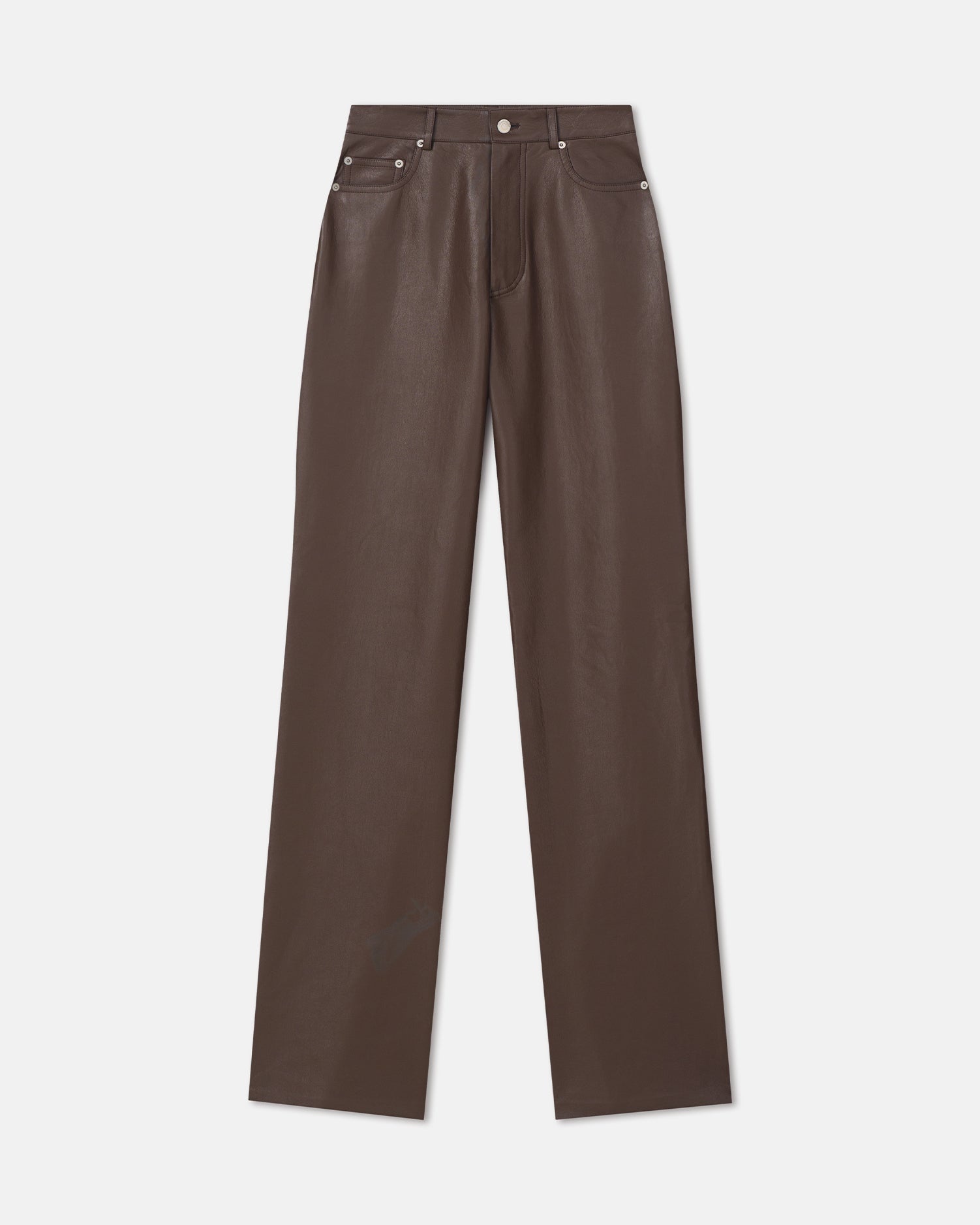 The Seldes pants demonstrate our homegrown practice of elevating design through conscious development. They are made from innovative regenerated leather, and have a high-waist and elongated straight-leg fit. Fit Standard fit, matches usual sizing. Materials and Care Shell: Coating: Polyurethane Base: 100% Polyester Lining: 100% Viscose Do not wash, do not bleach, do not tumble dry, iron low heat (110°), gentle dry clean any solvent except trichloroethylene, do not wring Handle with care to ensure garment lifespan. Repair or resell to support circular fashion.