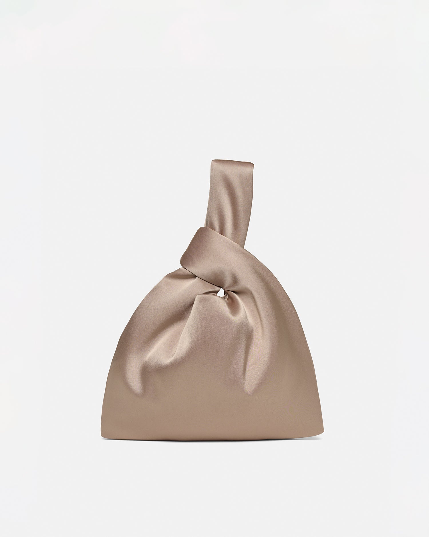 We continually look to update our hero pieces through material innovation and manipulation. This version of our Jen bag is crafted from satin in a dune tone. With a slouchy triangular shape and looped wrist-strap, it is perfectly sized for evening essentials. Materials and Care Shell: 86% Triacetate 14% Polyester Do not wash, do not bleach, do not tumble dry, do not iron,do not dry clean. Handle with care to ensure garment lifespan. Repair or resell to support circular fashion.