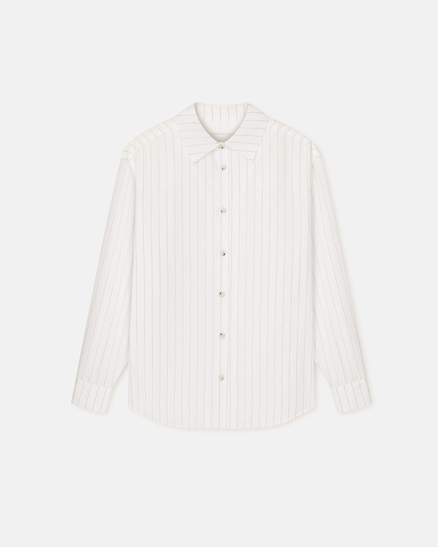 The Fryda shirt is made from a lightweight suiting fabric for an easy-going boxy fit. Decorated with subtle stripes, it’s designed to be worn with the matching shorts. Fit Standard fit, matches usual sizing. Materials and Care Shell: 85% Viscose 13% Polyamide 2% Cotton Lining: 100% Cotton Machine wash warm (30°) permanent press, do not bleach, do not tumble dry, iron low heat (110°), dry clean any solvent except trichloroethylene. Handle with care and wash less to ensure garment lifespan. Repair or resell to support circular fashion.