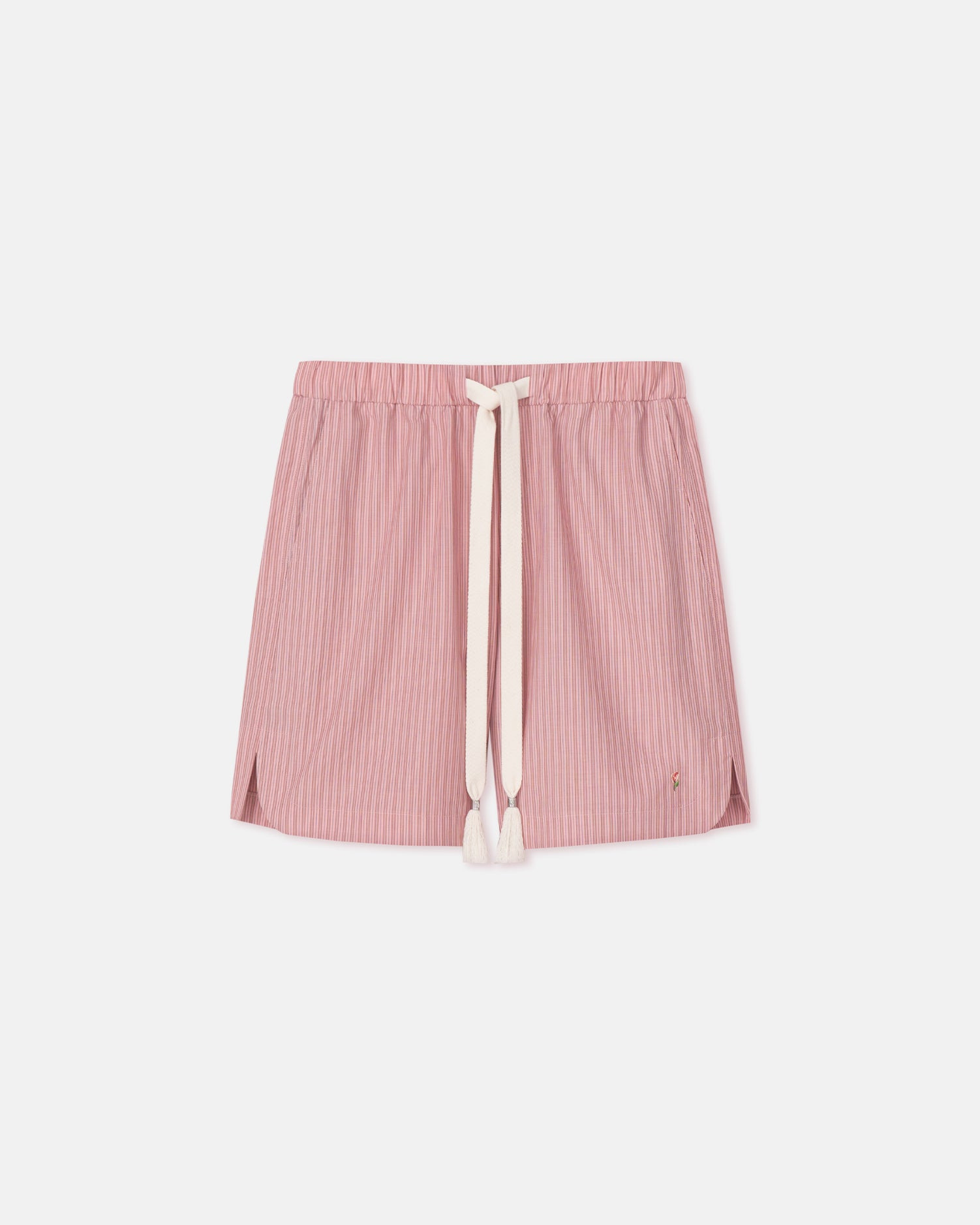 The Anish shorts are made from a striped shirting-inspired fabric. They have a loose, lightweight silhouette that can be cinched at the drawstring waist. Fit Standard fit, matches usual sizing. Materials and Care Shell: 55% Tencel 45% Cotton Do not wash, do not bleach, do not tumble dry, iron medium heat (150°), dry clean any solvent except trichloroethylene Handle with care to ensure garment lifespan. Repair or resell to support circular fashion.
