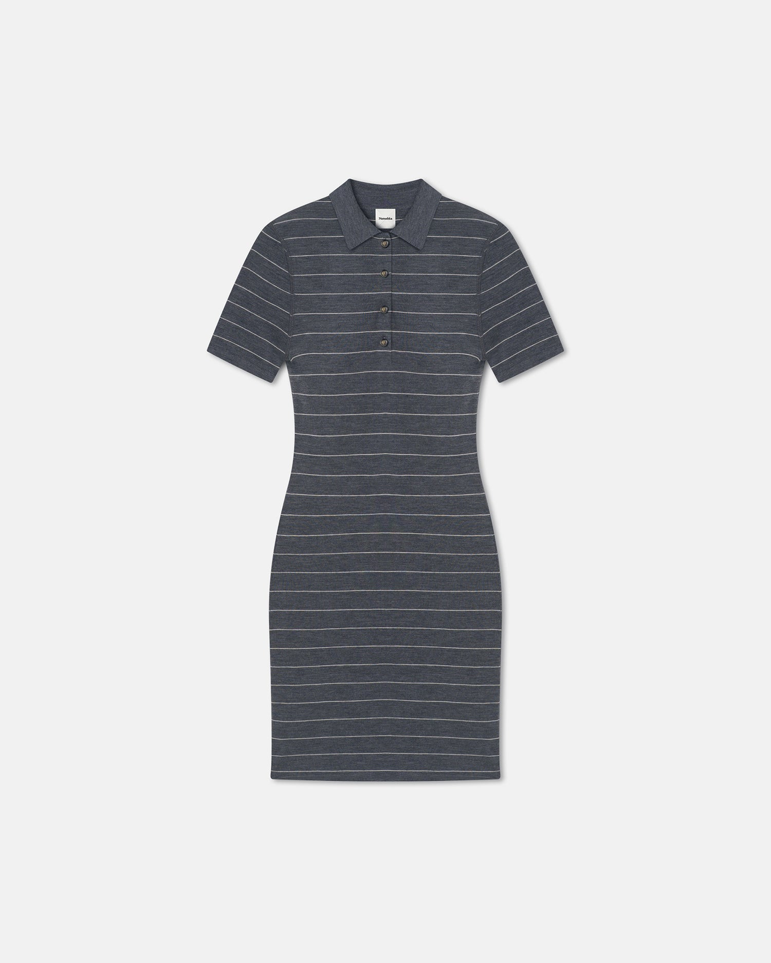 The Safiyah dress takes inspiration from sports aesthetics. Made from super-soft terry merino, it has fine grey stripes and a polo-neck silhouette. Fit Tailored to be fitting against the body. Materials and Care Shell 1: Merino Shell 2: 44% Cotton 53% Polyamide 3% Elastane Hand wash, do not bleach, do not tumble dry, iron low heat (110°), dry clean any solvent except trichloroethylene, dry flat, do not wring Handle with care and wash less to ensure garment lifespan. Repair or resell to support circular fashion.