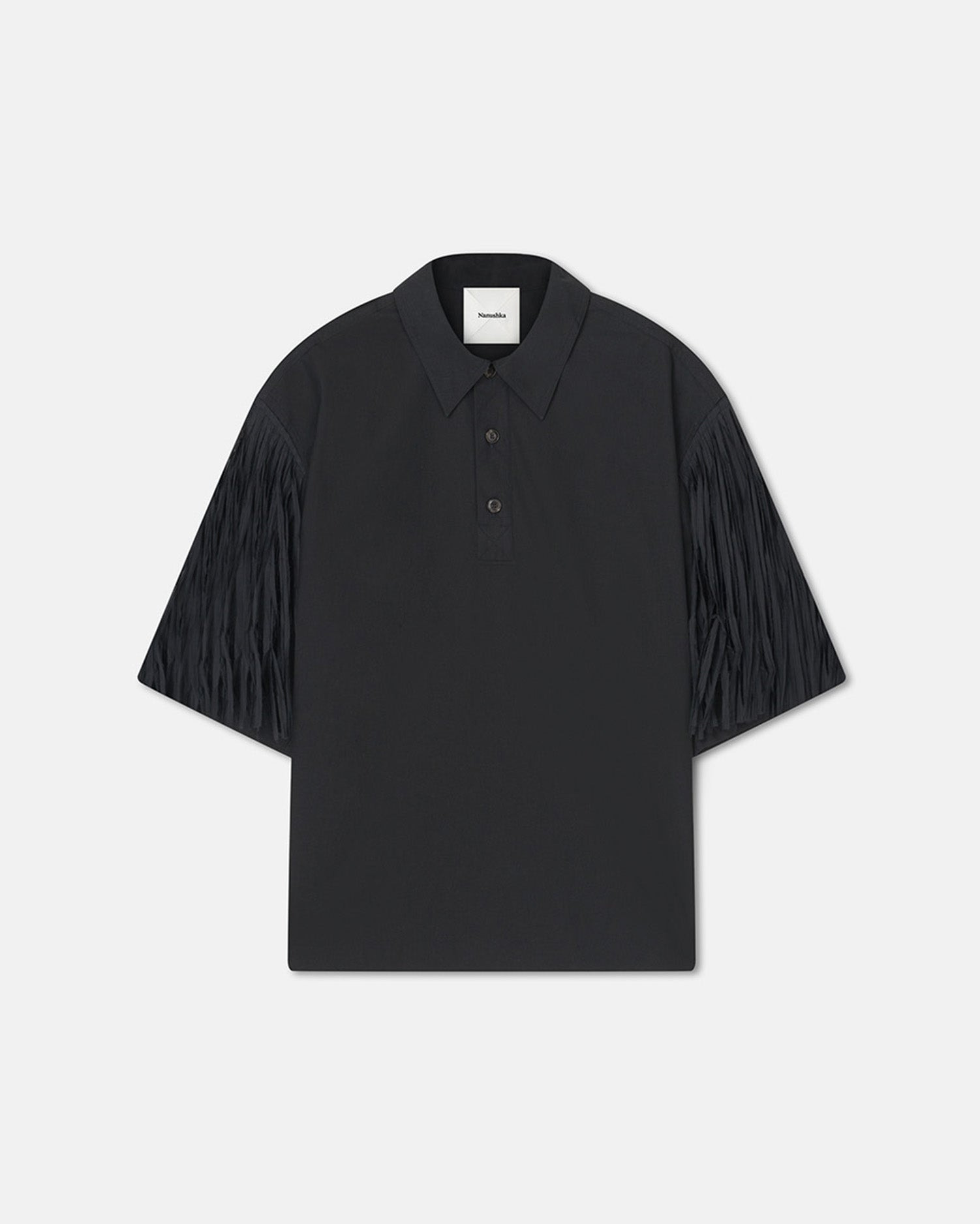 The Ilian shirt demonstrates our love of fabric manipulation. It is made from heavy poplin with fringed tech poplin sleeves for subtle texture difference. Fit Intentionally designed for an oversized look. Materials and Care Shell1: 100% Cotton Shell2: 72% Nylon(Recycled) 28% Cotton Do not wash, do not bleach, do not tumble dry, do not iron, dry clean any solvent except trichloroethylene, do not wring. Handle with care to ensure garment lifespan. Repair or resell to support circular fashion.