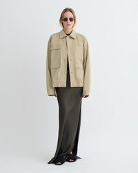 The Zubin jacket is minimally detailed to evoke classic utilitarian aesthetics. It’s crafted from hard-wearing tech twill in a versatile pebble tone, and has a relaxed fit emphasised capacious flap pockets. Fit Standard fit, matches usual sizing. Materials and Care Shell: 50% Cotton 47% Polyamide 3% Elastane Lining: Lining 1: 100% Viscose Lining 2: 70% Cotton 30% Polyamide Do not wash, do not bleach, do not tumble dry, iron low heat (110°), gentle dry clean any solvent except trichloroethylene Handle with care to ensure garment lifespan. Repair or resell to support circular fashion.