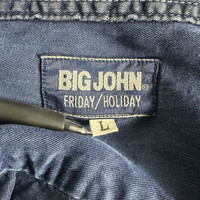 💥HIT AN OFFER AND WE WILL REPLY YOU ASAP 💥 ✓ DONT FORGET TO READ THE DESCRIPTION AND PICTURES ABOUT THE ITEMS 💰CAREFULLY BEFORE BUYING Tag : Big John Size on Tag : Large Material : Cotton Country of manufacturing : Faded Measurement lay flat down (inches) Armpit : 22” inches Shoulder : 19.5” inches Length : 30” inches Sleeve Length : 23.5” inches Condition : 8/10 Good used vintage condition with defect on neck. Please refer to pictures (view and zoom) for more details. Description -Please compare the measurement with your garment. -Please ask any questions before buying. Payment and Shipping -Accept Paypal only. -Item will be shipped with fast, traceable tracking numbers. 📌 Worldwide shipping with tracking eta : 2-5 weeks or more for delivery, depends on your custom checking. OR 📌Request for DHL Express eta : 8 days or less (+15USD) 📌Items will be declared $10 to avoid your custom tax fee. (We don't responsible to any additional tax regarding to your country regulation.) -No shipping to ISRAEL or AFRICA -All sales are FINAL 📌No RETURN or TRADE, FOR SALE ONLY 📌Please drop your phone number for shipping purposes Reminder Please do not expect the stuffs we sell in mint brand new condition, unless we describe them because we sell pre-owned clothing which are previously worn. But mostly we sell the best selected pre-owned stuffs. Sometimes they came with tags in new condition. *Thank you so much and happy shopping*