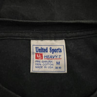 Tag : United Sports Size : X Large Material : Cotton Country of manufacturing : Made in USA Manual Measurement Armpit : 20ā inches Length : 26.5ā inches Condition : 8/10 (Good used vintage condition with no holes and stains. Please refer to pictures for more details). Description : -Please compare the measurement with your garment. -Please ask any questions before buying. Payment and Shipping: -Accept Paypal only. -Please leave your phone number on the note while make a purchase. -Shipping may takes 3 to 5 weeks depends on location. š¦Post via DHL EXPRESS (+20USD) -ETA 3-5 working days. šItem will be shipped within 1-2 business days after receiving a cleared payment.