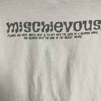 Tag : Mischievous Size on Tag : Large Material : Cotton Country of manufacturing : Made in Japan Manual Measurement Armpit : 21.5” inches Shoulder : 20.5“ inches Length : 25” inches Sleeve Length : 20“ inches Condition : 8/10 (Good used vintage condition with no holes and stains. Please refer to pictures for more details). Description : -Please compare the measurement with your garment. -Please ask any questions before buying. Payment and Shipping: -Accept Paypal only. -Please leave your phone number on the note while make a purchase. -Shipping may takes 3 to 5 weeks depends on location. 📦Post via DHL EXPRESS (+20USD) -ETA 3-5 working days. 📌Item will be shipped within 1-2 business days after receiving a cleared payment.