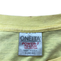 Details Tag : Oneita Size : Large Material : Cotton Country of manufacturing : Made in USA Manual Measurement Armpit : 22” inches Shoulder to shoulder : “ inches Length : 26” inches Sleeve length from shoulder : “ inches Condition : 8/10 (Good used vintage condition with no holes and stains. Please refer to pictures for more details). Description : -Please compare the measurement with your garment. -Please ask any questions before buying. Payment and Shipping: -Accept Paypal only. -Please leave your phone number on the note while make a purchase. -Shipping may takes 3 to 5 weeks depends on location. 📦Post via DHL EXPRESS (+20USD) -ETA 3-5 working days. 📌Item will be shipped within 1-2 business days after receiving a cleared payment.