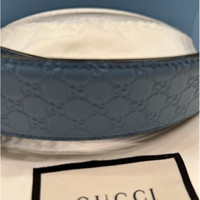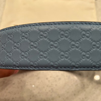 Brand: Gucci (authentic) Condition: Excellent no signs of wear Size: 70 x 28 Color: Baby blue with GG’s stamped all over. Leather material, silver hardware.