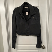 Brand: free people Condition: New with tag Size: XSmall Color: black Details: Cropped length Point collar Front button closures Drop-shoulder long sleeves Flap pockets at chest, raw hem, distressed look. Unlined 100% cotton