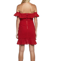 Brand: Bardot (Purchased from Bloomingdales). Condition: New with tag, never been worn. Size: US 6/small Color: Beautiful red color. Details: Ruffle front detail. Sleeves can be worn on or off the shoulder. Eyelet fabric. 100% cotton. Exposed back zipper.