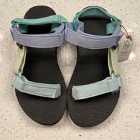 Brand: Teva Condition: New Size: 5 (Could fit a 5.5) Color: Multicolored, black sole.