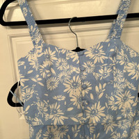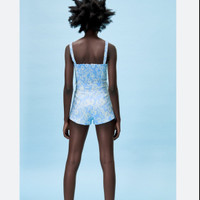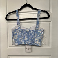Brand: Zara Condition: New with tags Size: XSmall Color: baby blue with white flower print High waisted shorts with belt, and cropped top with side zipper.