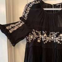 Brand: Zara Condition: New with tag Size: Small Color: black with white embroidery Details: 3/4 sleeves, the front part has lining but the back of the top is sheer.
