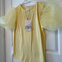 Brand: Zara Condition: New with tag Size: Kids 11-12 which is equivalent to womens XS Sheer puff sleeve, super cute!