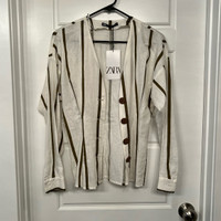 Brand: Zara Condition: New with tag Size: small Pleats on the back of the top. Wood looking buttons. Linen material.
