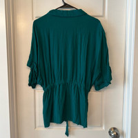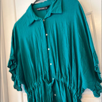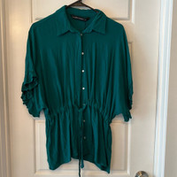 Brand: Zara Condition: New with tag Size: Small Color: dark green Tie waist, ruffle sleeves.