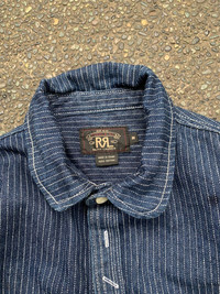 Made from double-layered cotton and dyed with indigo. Workwear-inspired stripes discharge-printed at the exterior. *Shirt Jacket *Mismatch Pockets *Triple Needle Construction *Chain Stitching Tagged Size: M Condition: 9.5/10 Material: 100% Cotton Dimensions Length: 27.5” Width: 20” Shoulder: 17” Sleeve: 23.5 ☛ Please don't expect it to be like new or in pristine condition, this is a used item. There is a slight signs wear, but it is a relatively clean product. ☛Compare these size measurements to a similar garment you already own. Take all measurements from the outside with the garment lying flat. ☛All Measurements were been measured flat on the floor. If you are not sure about size, Please use the actual measurements as your guide to best / true fit. ☛Do not rely on clothing tag size as items pre-worn maybe have altered, stretch or shrink & vintage sizes do not translate modern sizes directly. Tagged sizes can vary from by brand, country of origin, era, etc. ☛Please take a look carefully at the descriptions and pictures above. 💳𝐏𝐚𝐲𝐦𝐞𝐧𝐭&𝐒𝐡𝐢𝐩𝐩𝐢𝐧𝐠🛫 • ✅ Accept 'Paypal' Only. • Please add $50 for shipping via DHL Express. only takes within 4-7 days to arrived • Don't worry about Custom tax fees during Shipping because I always declared all items as a Gift and wrote the value lower than original price usually just $10 only.. •Please leave your contact number before/after you offer ☛ We offer only authentic products. We don't sell imitations or fake products. ☛ If you have any questions, please contact us and we will get back you as soon as possible. I am extremely fair & easy to work with ☛ Please visit my shop for other steals BUY WITH CONFIDENCE!