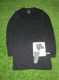 Cult designer Rick Owens aggressively experiments with composition, construction and silhouettes, channeling all of these elements effortlessly into his DRKSHDW offering. A series of contrasting patches sit to the lower section of this Level Tee, a signature detailing of the DRKSHDW collection. The lightweight jersey tee has been finished with ribbed cuffs and the designer's instantly recognizable extended proportion. 100% Cotton Ribbed Cuffs Applique Patches Long Line Silhouette Made In Italy Fits true to size, we suggest taking your normal size. Slim cut, but not too fitted. Model is 6'2"/188cm with a 37"/94cm chest and wears size Small.