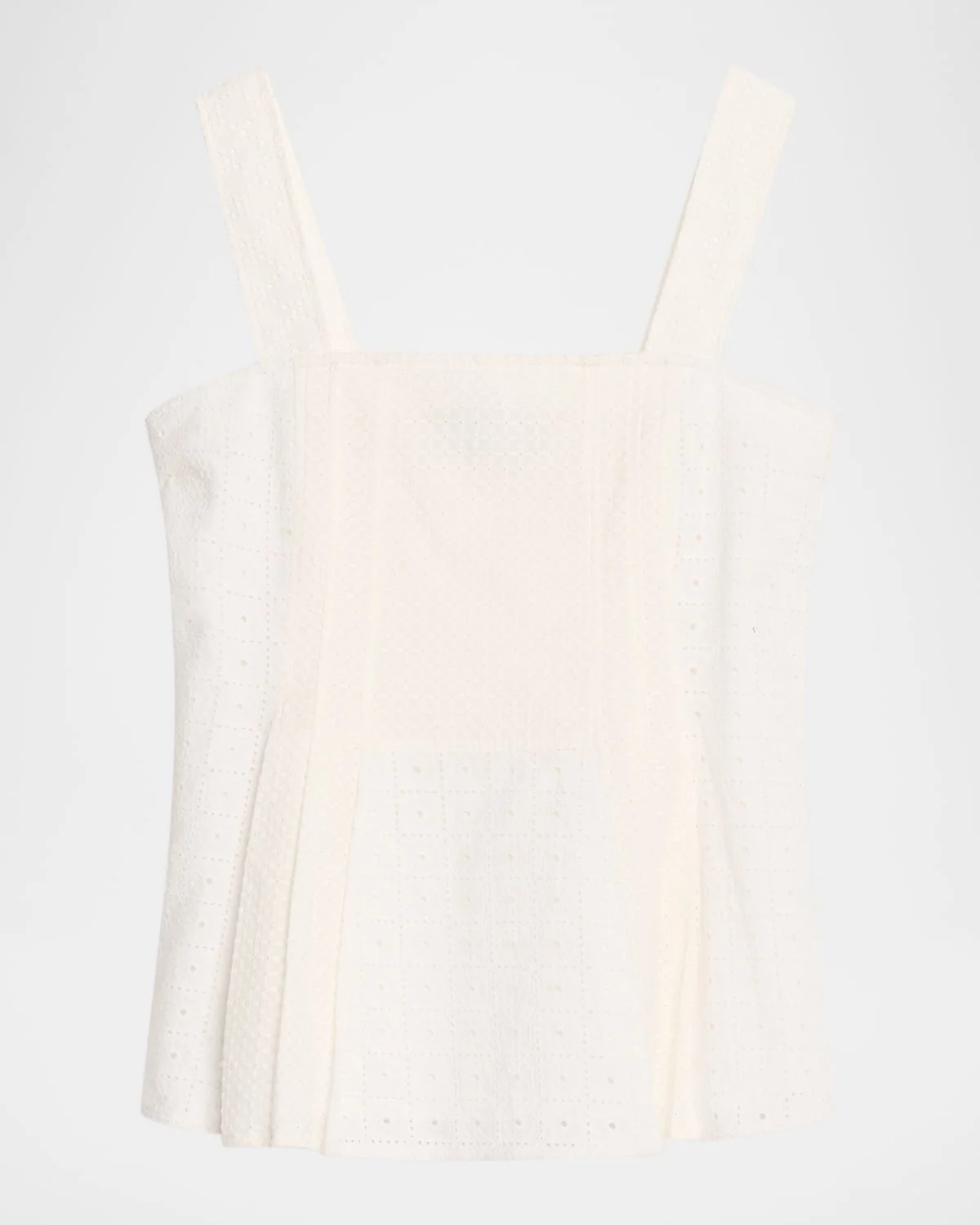 3.1 Phillip Lim broderie anglaise top crafted from crisp cotton poplin & nbsp; Square neckline Sleeveless Classic fit Hem falls to the hip Slipover style & nbsp; Cotton Lining: Polyester Professional cleaning recommended Imported