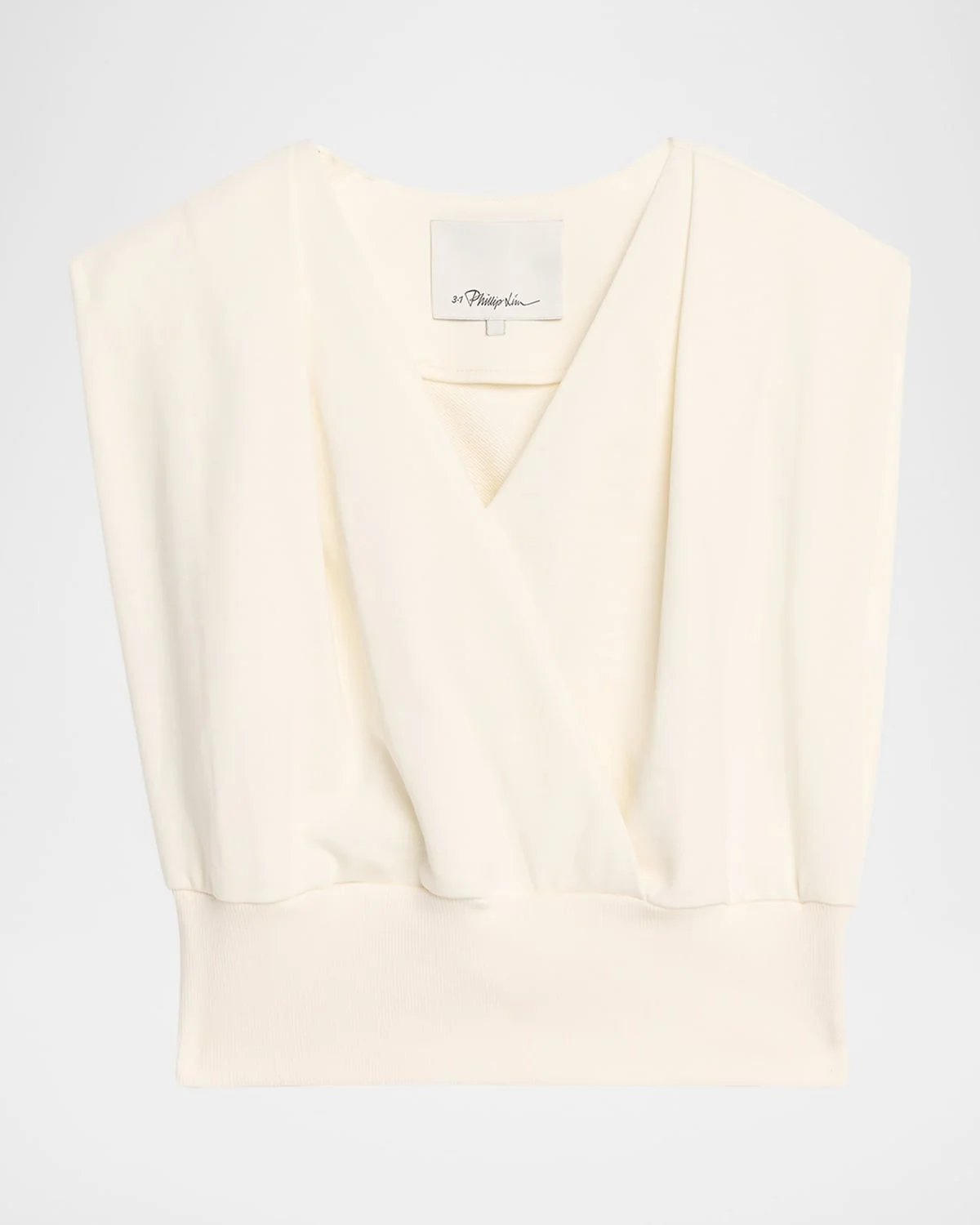 3.1 Phillip Lim draped top finished with a wide ribbed hem, crafted from soft French terry knit & nbsp; V neckline Sleeveless Boxy fit Hem sits at the hip Pullover style & nbsp; Cotton/nylon/polyamide/elastane Professional cleaning recommended Imported