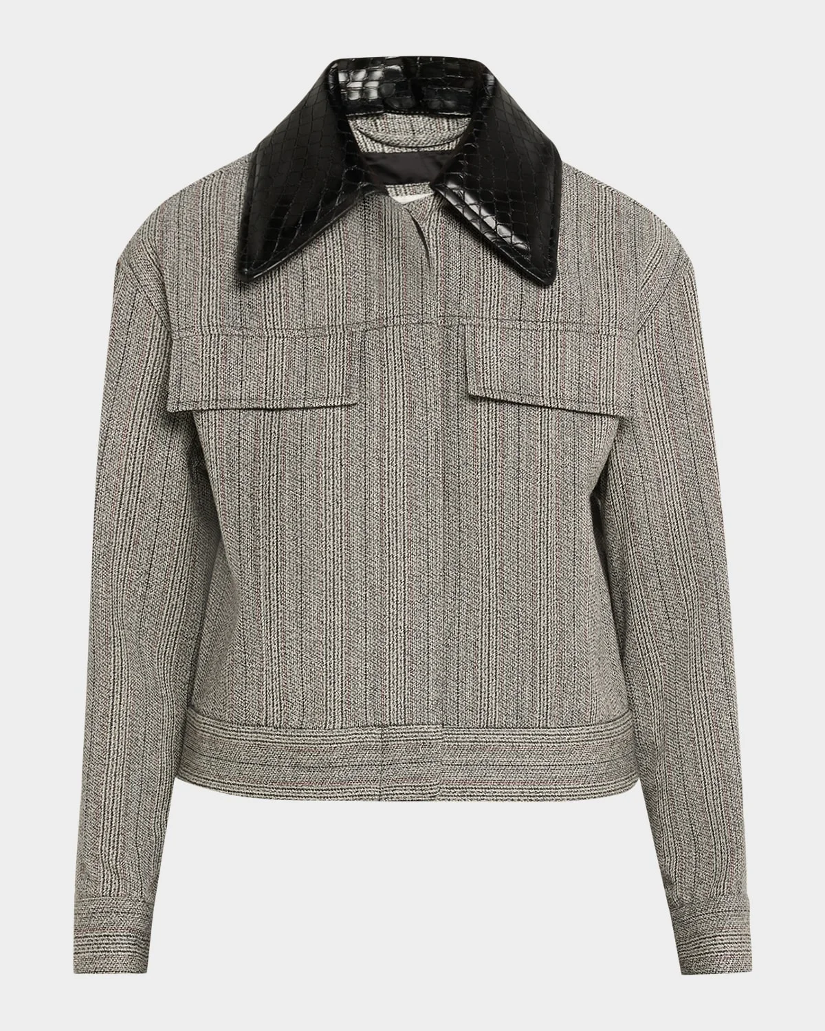 Tailored in Italian jaspe wool, this 3.1 Phillip Lim jacket boasts a removable crocebossed vegan leather collar and bow tabs for an edgy finish with versatile styling. Long sleeves with button cuffs Dual chest pockets Tailored fit Hem sits at the hip Hidden snapfront Wool/cotton/polyester Lining: Cupro Dry clean Imported