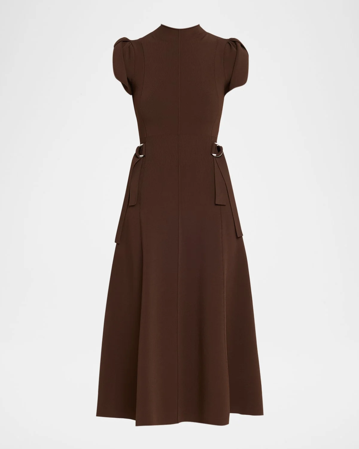 Crafted in compact ribknit, this 3.1 Phillip Lim midi dress boasts tulip sleeves and adjustable Dring sides for a personalized fit. Mock neckline Short sleeves Aline silhouette Hem falls below the knee Slipover style Viscose/polyester Dry clean Imported