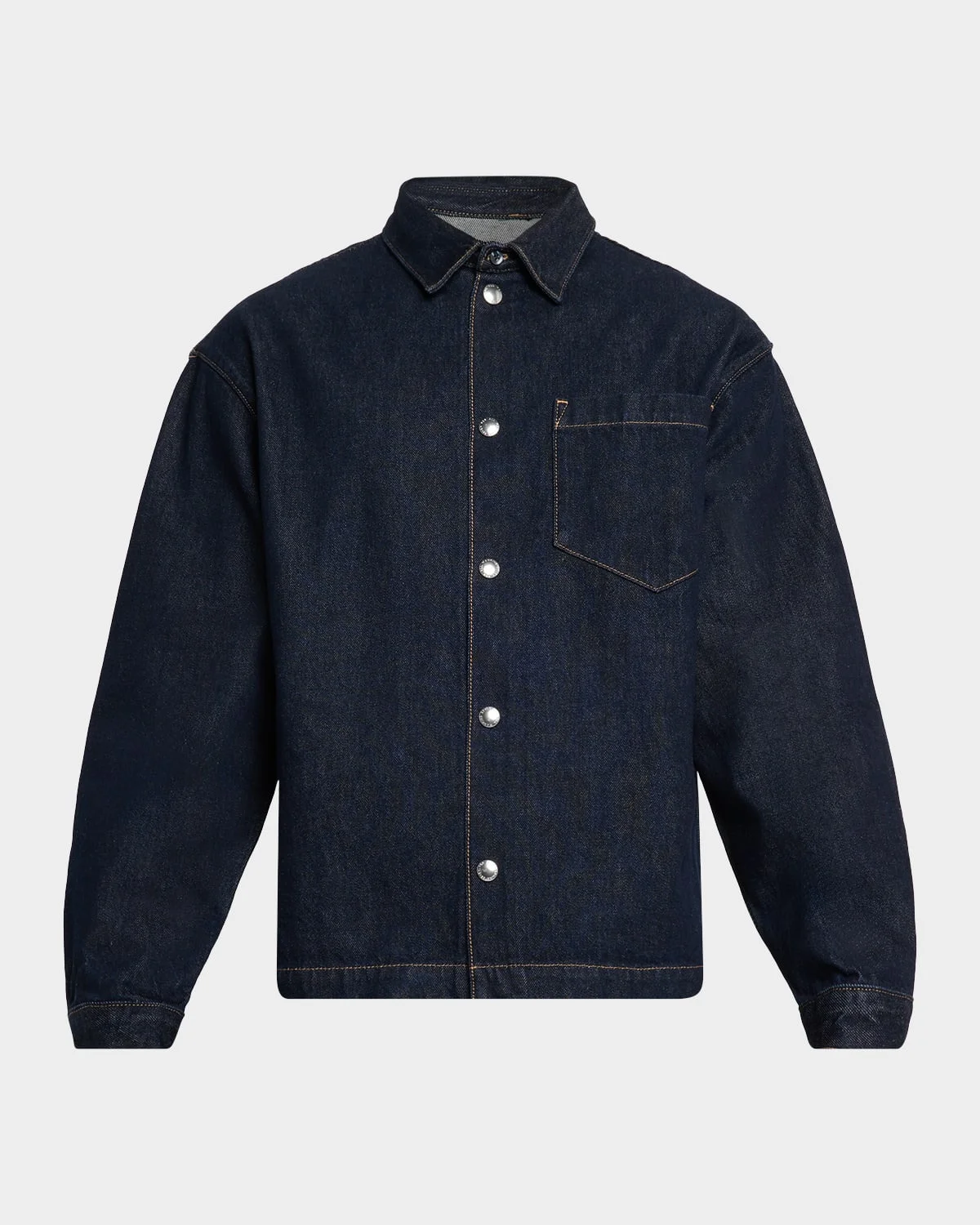 The 7 For All Mankind overshirt is cut from rigid denim that holds its shape while evolving into a softer, more livedin fit over time. Back neck label Point collar Snap front closure Single chest pocket Singlesnap cuffs Boxy fit Cotton Made in Italy