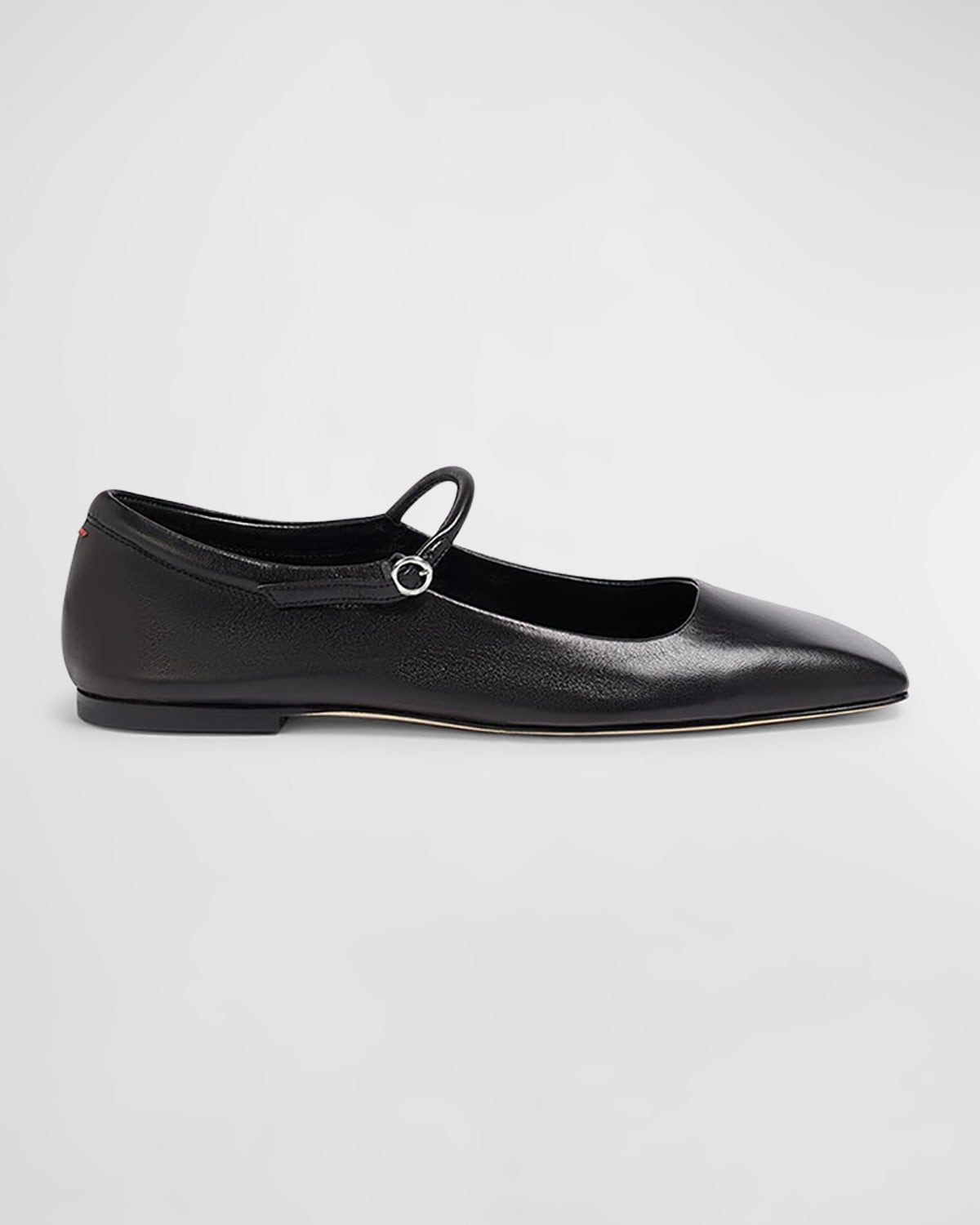 - Aeyde "Uma" shiny calf leather ballerina flats - 0.17 in / 5 mm flat heel - Square toe - Mary Jane buckle strap - Made in Italy - Size Note: Item runs small, consider ordering a size up.