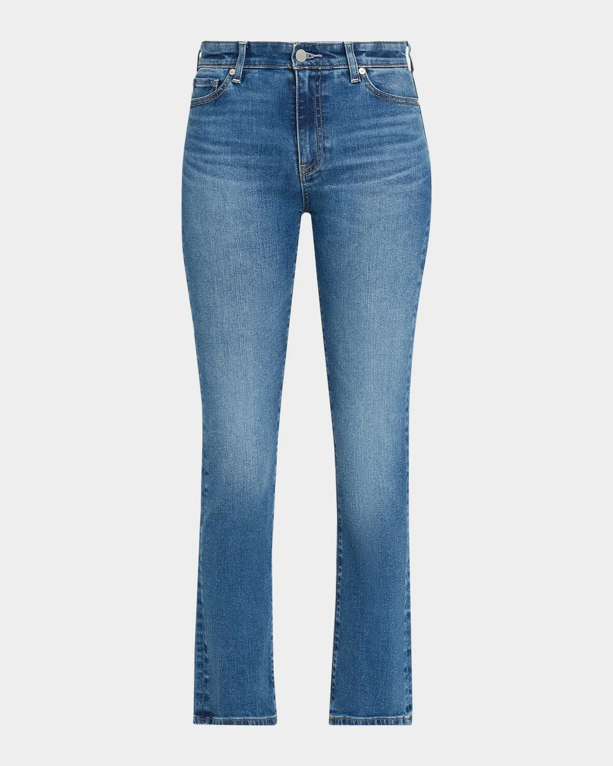 AG "Mari" jeans in stretch-denim with contrast stitching.Approx. measurements: 9.75" rise; 29" inseam; 13" leg opening.High-rise; belt loops.Five-pocket style.Fitted through straight legs.Ankle length.Button/zip fly.Cotton/polyurethane.Made in USA of imported material.