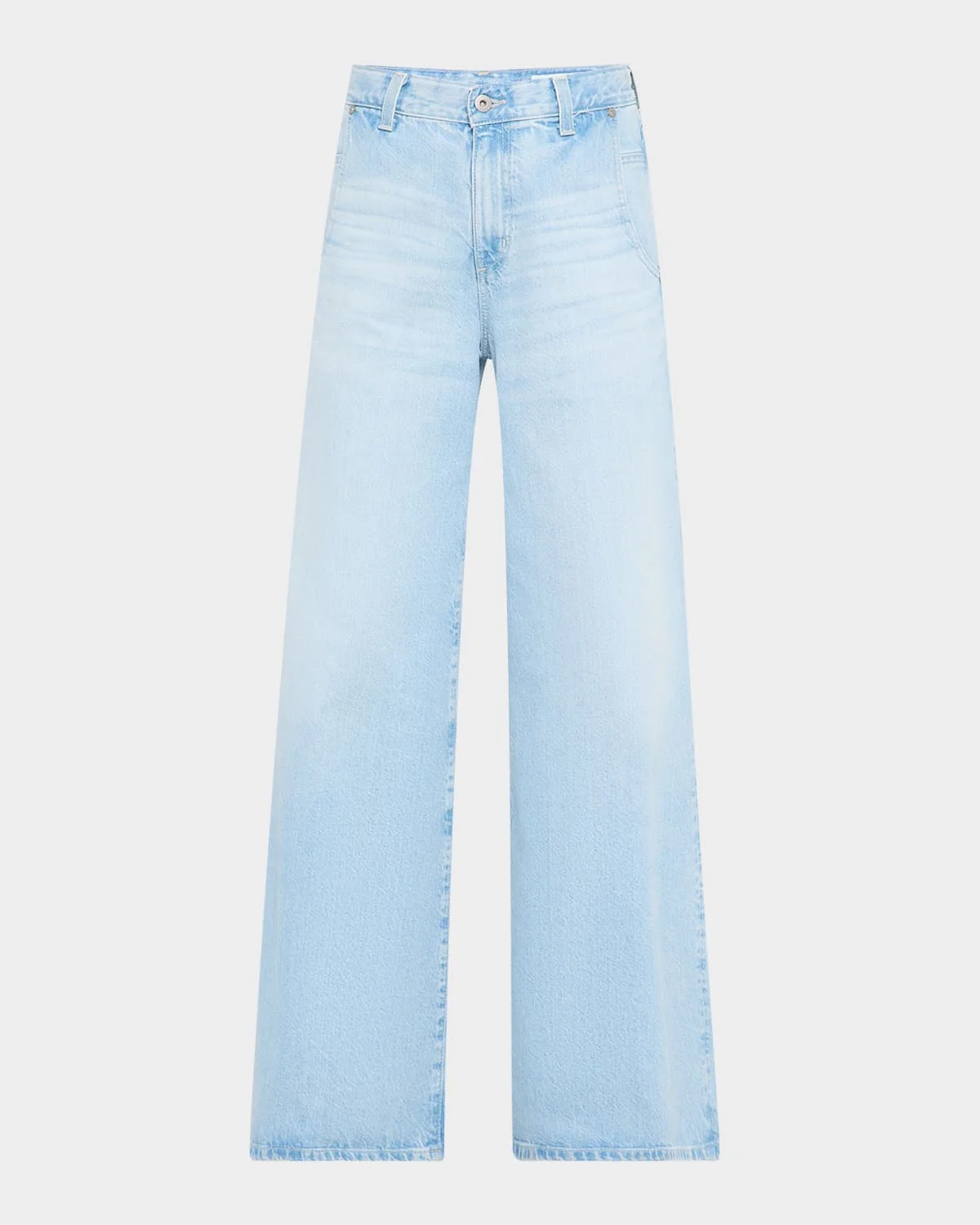 AG Jeans "Posey" wide-leg jeans in light-wash denim & nbsp; Approx. 10.8" rise; 32" inseam Mid-rise; sits high on the hip Five-pocket style & nbsp; Loose, exaggerated fit & nbsp; Full length Button/zip fly; belt loops & nbsp; Cotton/lyocell Machine wash Imported