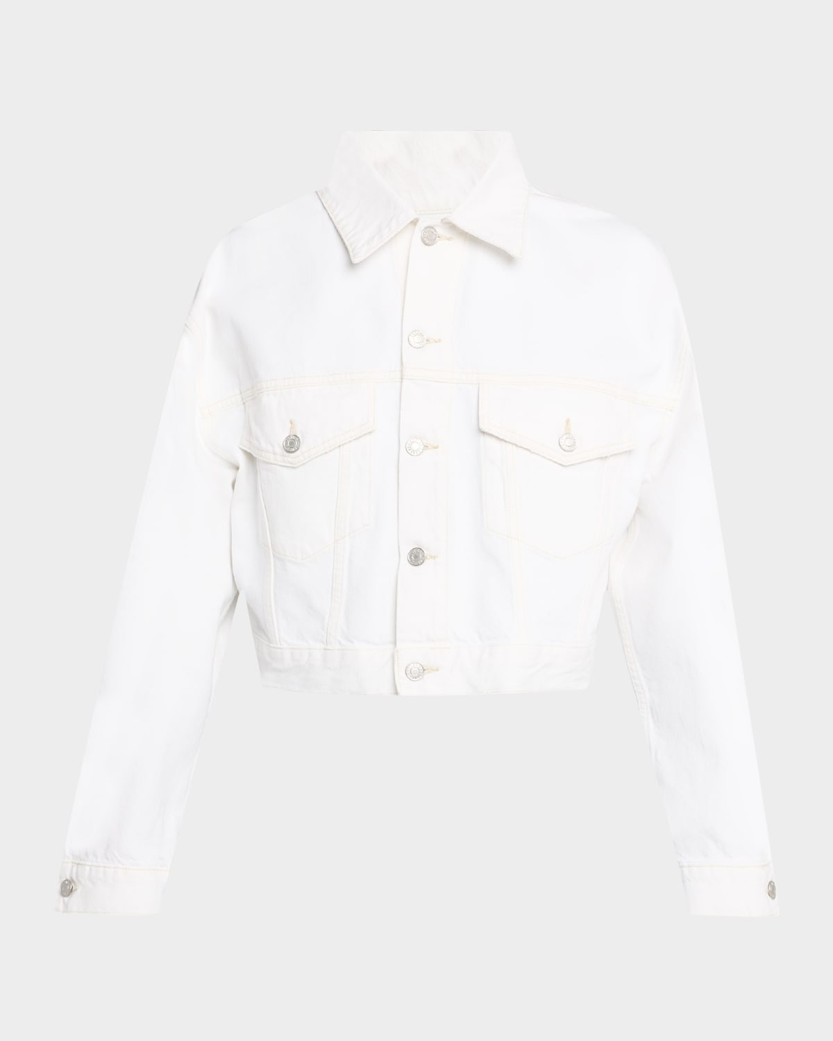 - AGOLDE "Palmer" jacket in crisp white denim - Point collar - Dropped shoulders - Long balloon sleeves with button cuffs - Dual chest pockets - Relaxed fit - Cropped length - Button-front - Cotton - Imported