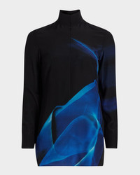 - Akris silk crepe tunic blouse patterned in - Alyson's Cyanotype - print - Mock neckline; zip front - Long sleeves - Side slits - Straight silhouette - Silk - Dry clean - Made in Switzerland