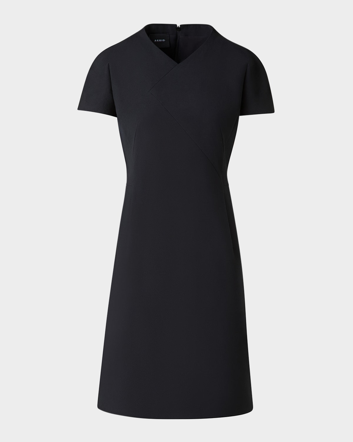 Akris doubleface cottonsilk dress fetauring an asymmetric front seam detail V neckline Cap sleeves Sheath silhouette Knee length Invisible back zip Cotton/silk/elastane Made in Romania