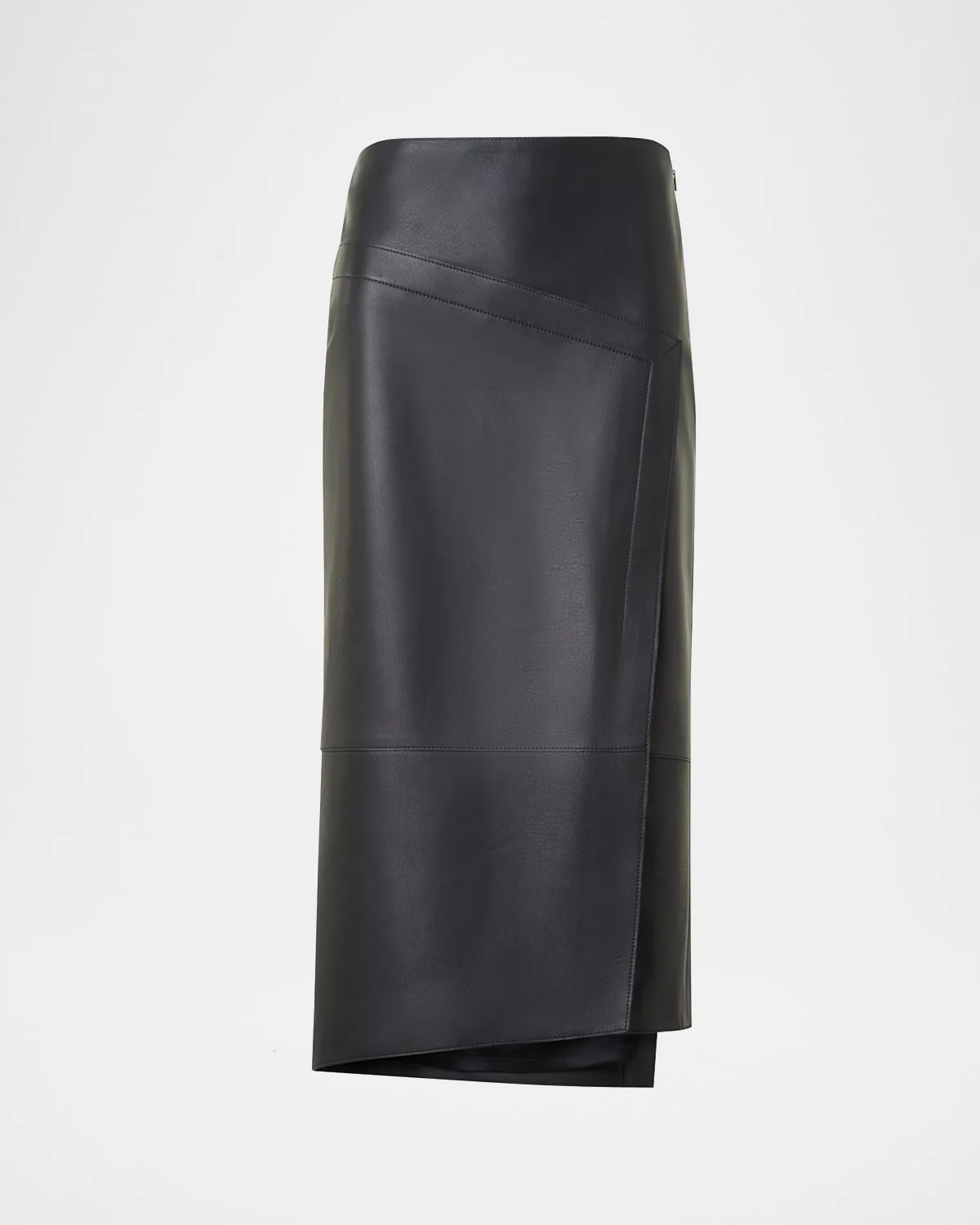 Asymmetric Trapezoid Nappa Leather Midi Skirt