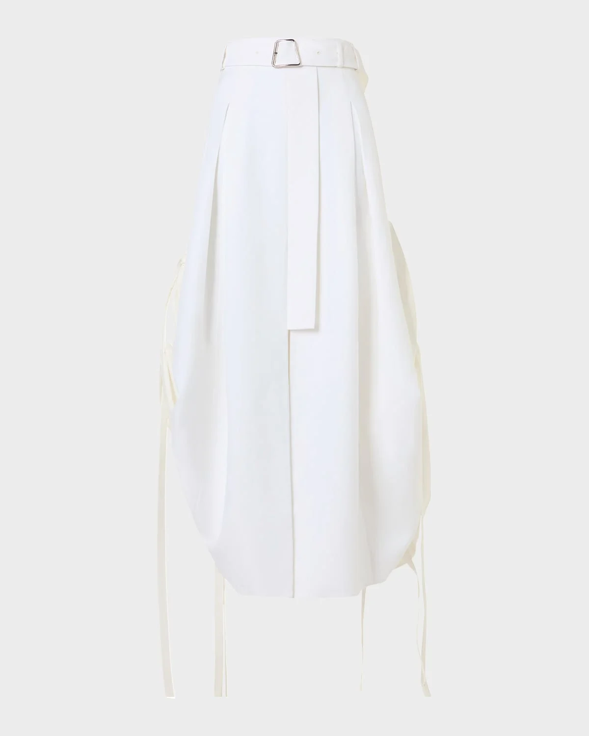Crafted from double-face cotton, this flared skirt from & nbsp;Akris features side gathering with a techno insert. Removable buckle belt Side slip pockets Zipped front slit Hem falls below the knee A-line silhouette Cotton/nylon/polyamide Lining: Viscose/spandex Dry clean Made in Switzerland
