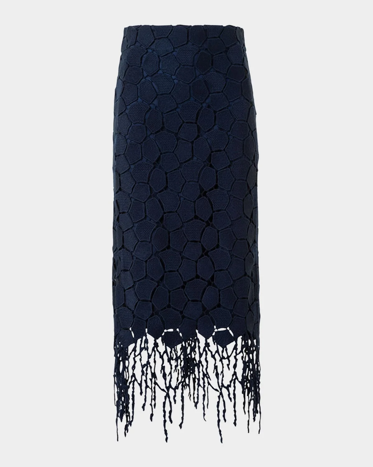 Broken Stone Guipure Fringed Midi Pencil Skirt