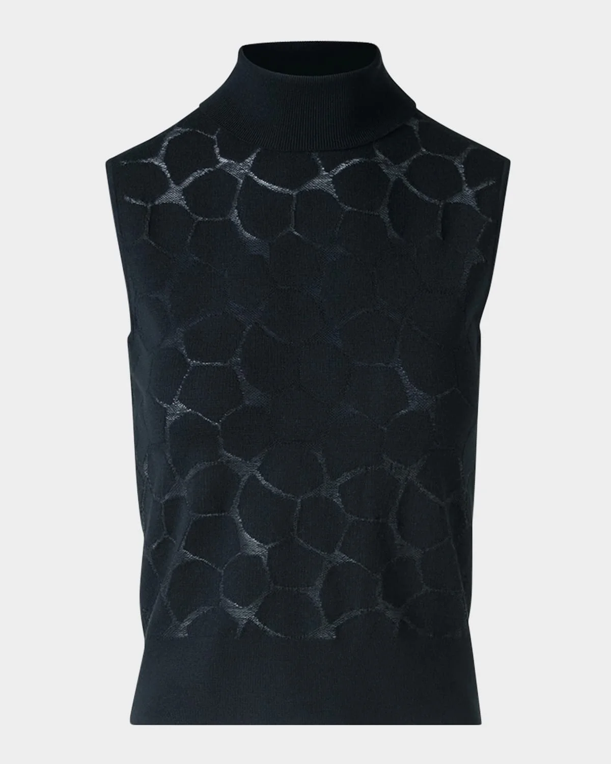 Broken Stone Jacquard Knit Sleeveless Turtleneck Sweater