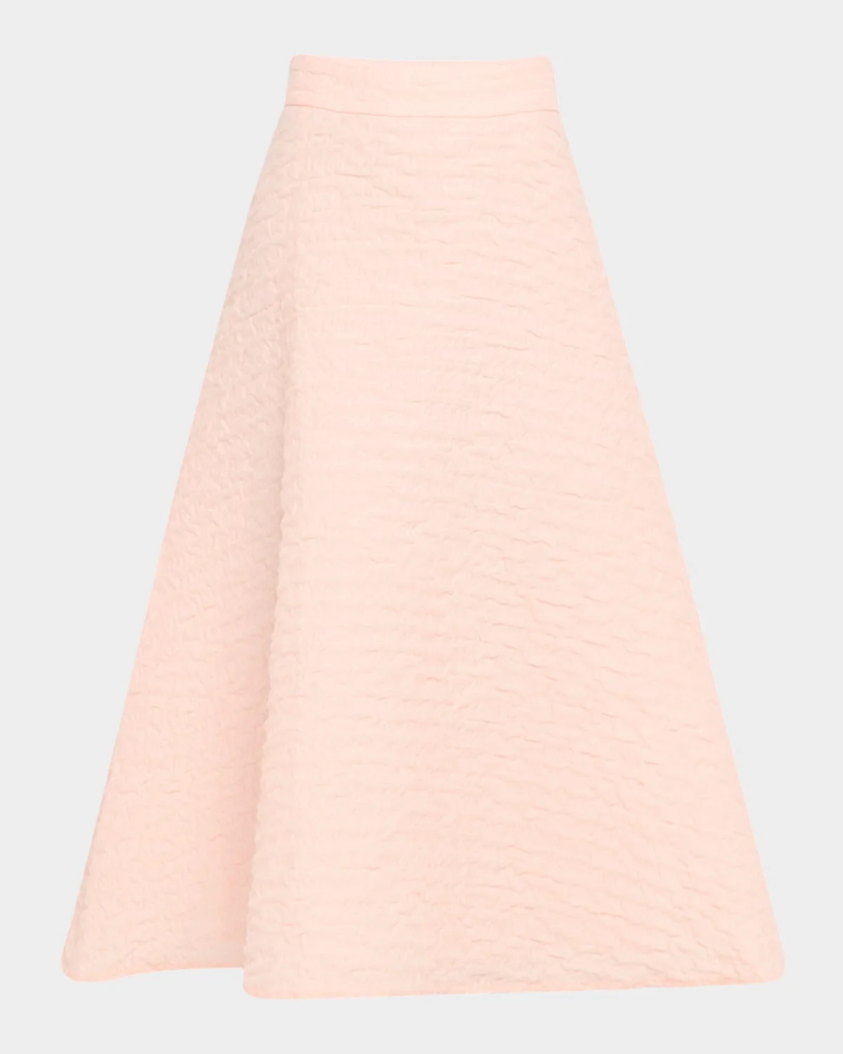 - Akris skirt in bubble 3d organza and techno cotton blend - High waist - A-line silhouette - Hem falls below the knee - Invisible back zip - Cotton/nylon/polyamide/polyester - Dry clean - Made in Romania