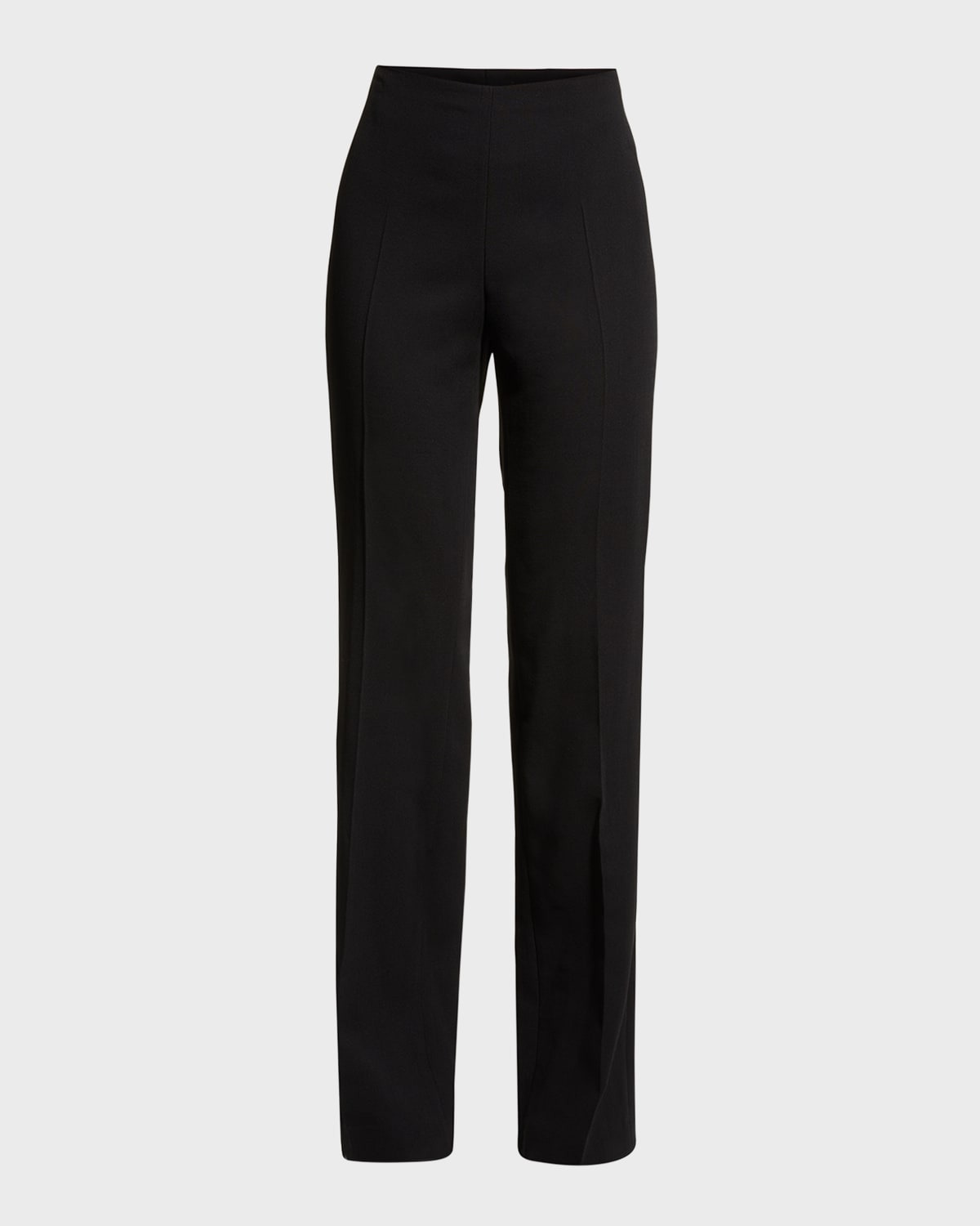 Akris "Carol" woolblend pants Approx. 37" inseam Highrise waist Flat front Straight legs Hidden side zip Wool/nylon; unlined Dry clean Made in Romania