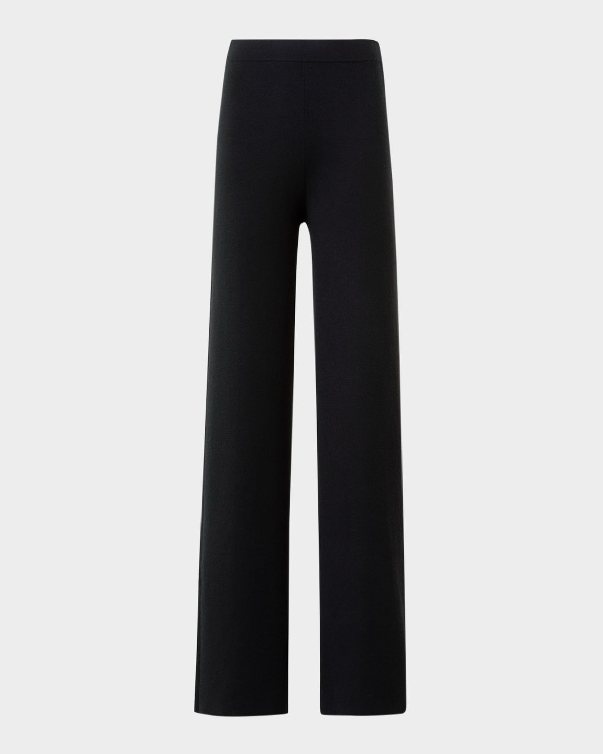 - Akris pants in Milano knit - High waist - Flat front - Bootcut legs - Full length - Side zip - Cashmere/silk - Dry clean - Made in Romania