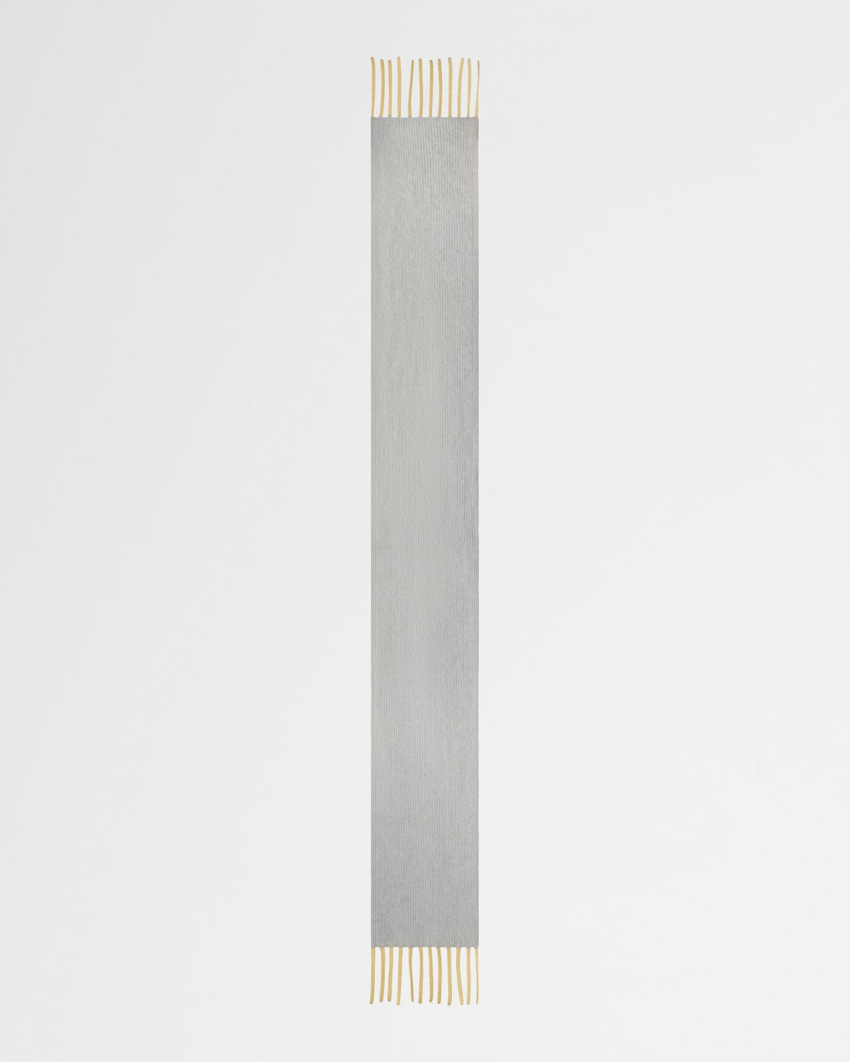Akris scarf is knit in a soft cloud cashmere with contrast fringed ends May be styled multiple ways Cashmere Dry clean Imported