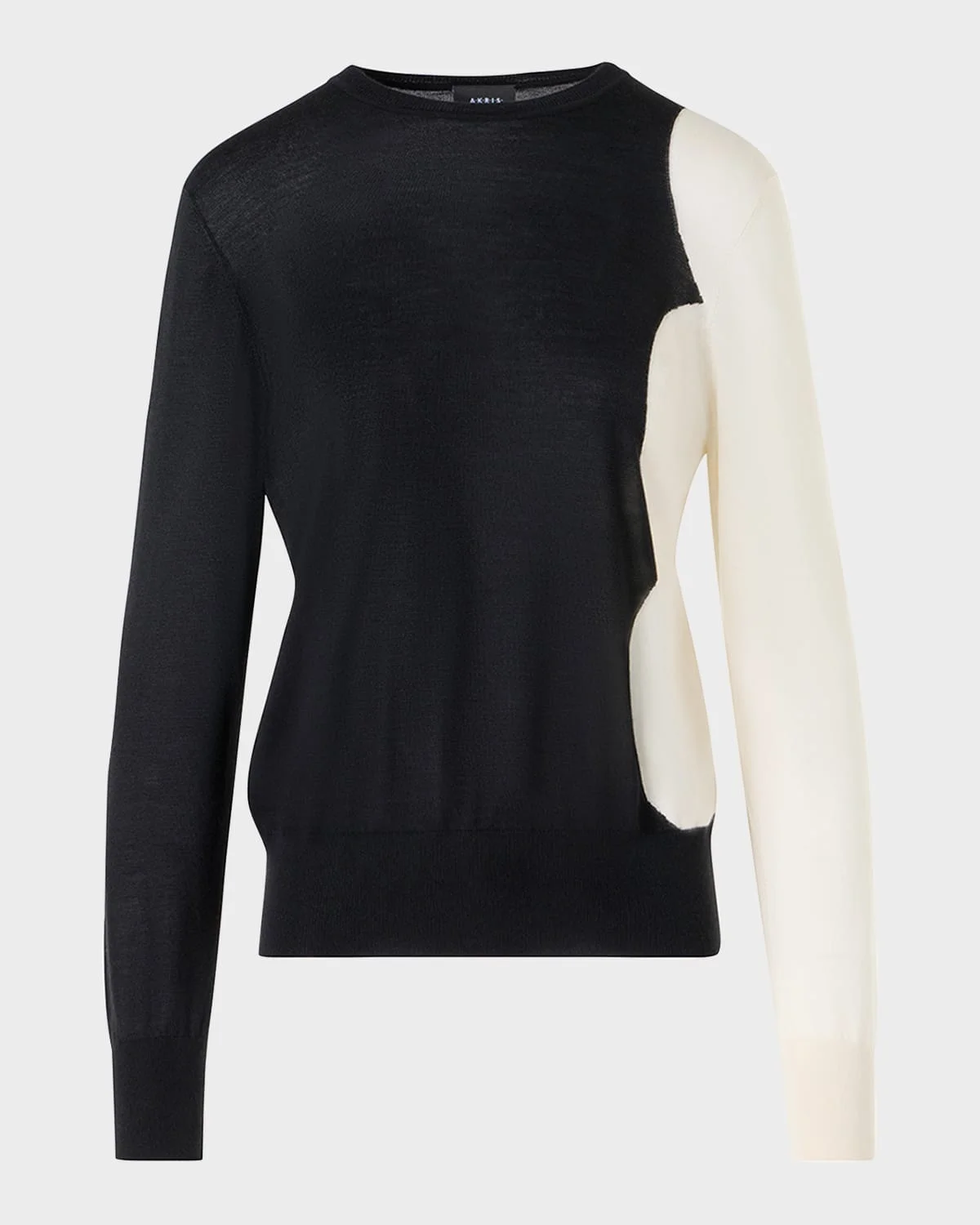 Crafted from lightweight cashmere-silk knit, this sweater from Akris features a colorblock cloud intarsia Crew neckline Long sleeves Relaxed fit Hip length Ribbed cuffs and hem Pullover style Cashmere/silk Dry clean Made in Romania SIZE & FITModel measurements: 5 & apos;10" tallModel is wearing a US size 4/Small
