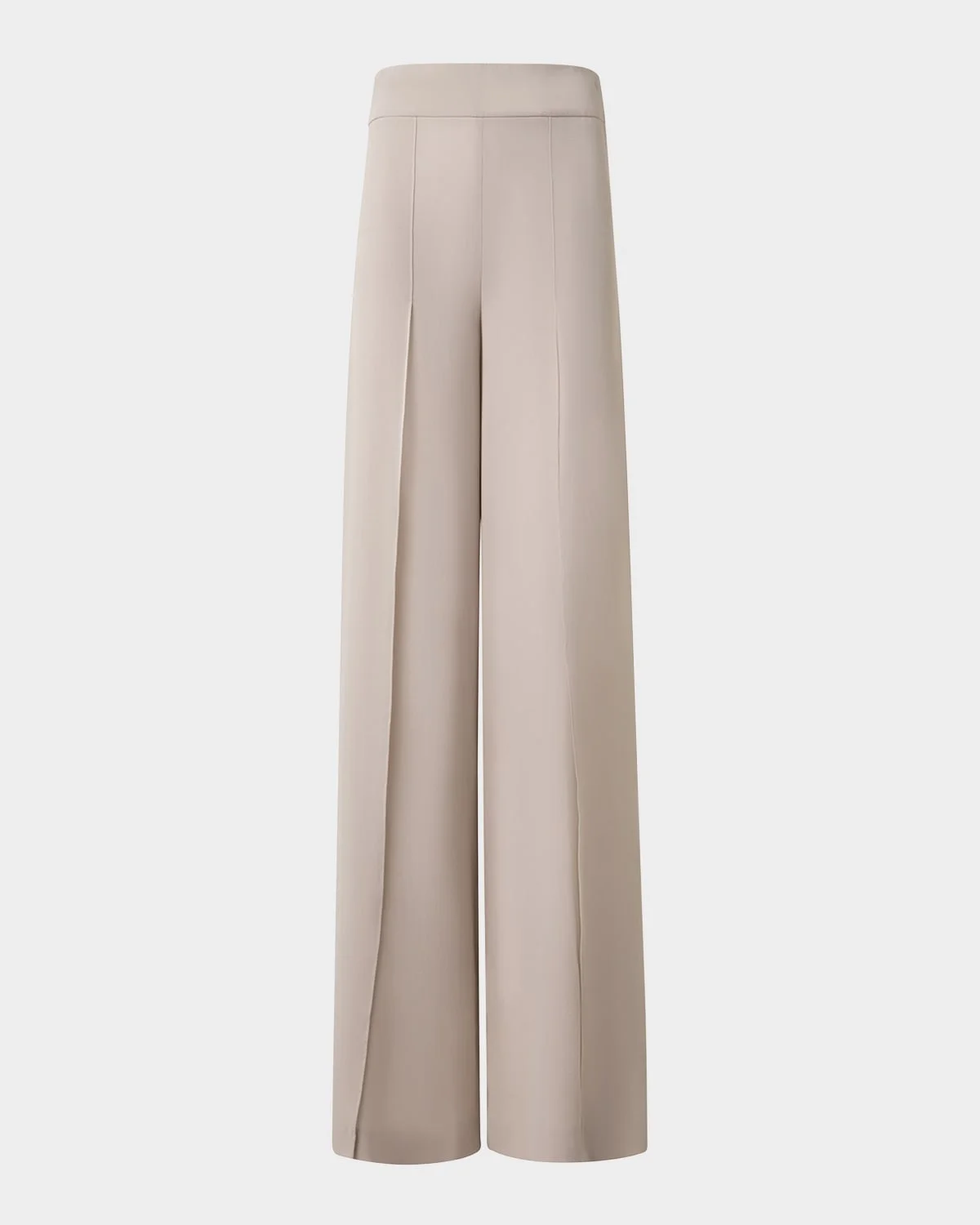 - Akris "Fellia" silk georgette pants featuring double-layer leg details with hem slits - High rise - Flat front - Wide legs - Full length - Invisible side zip - Silk - Dry clean - Made in Romania